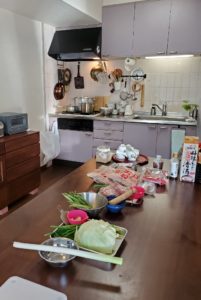 Mayuko’s kitchen was compact, as you would expect in a small Japanese apartment, but very organised and everything was set up for our cooking class on our arrival, with ingredients laid out ready for us of prepare.